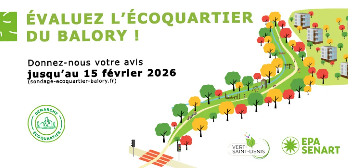 L’EPA Sénart, en coopération avec la commune de Vert-Saint-Denis, souhaite recueillir le ressenti et les avis des habitants et des usagers de l'écoquartier sur les aménagements du Balory (vie de quartier, mobilité, qualité de votre logement) afin d’identifier les effets leviers et les potentielles pistes d’amélioration.